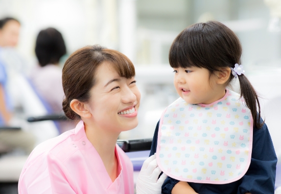 軟らかい食べ物を中心とする食生活が増えた結果、最近の子どもたちは以前と比べて顎が小さくなったといわれております。顎が鍛えられていないにもかかわらず、その少ないスペースに乳歯よりもサイズが大きい永久歯が生えてきます。スペースが足りないため歯がデコボコに生えてしまい、結果として歯並びや噛み合わせが悪くなってしまうのです。乳歯が残っているお子様の場合は、顎の成長スピードをコントロールしながら治療ができ、永久歯のスムーズな生え変わりをサポートできます。